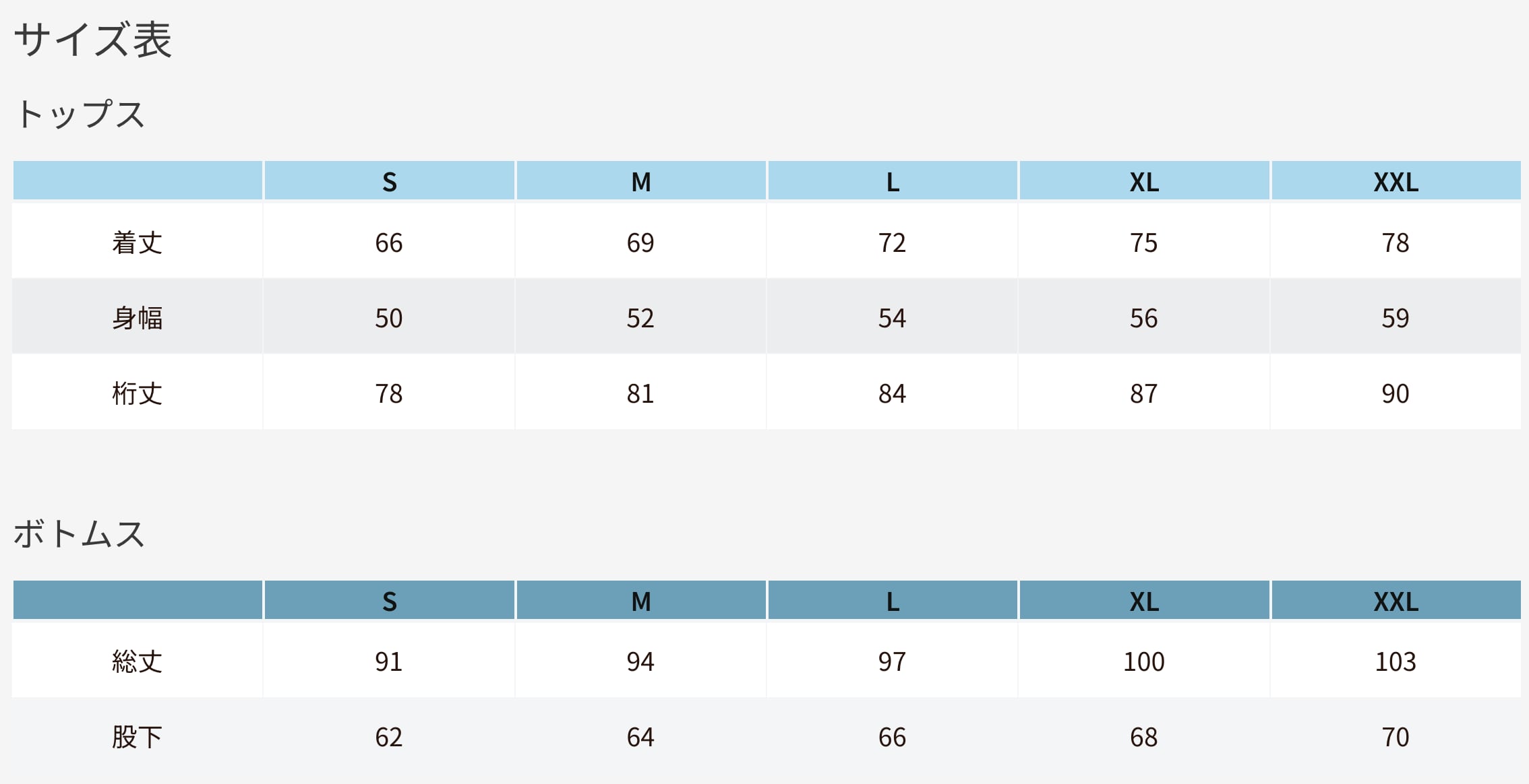 サイズ表は画像欄にございますのでそちらを参照ください。